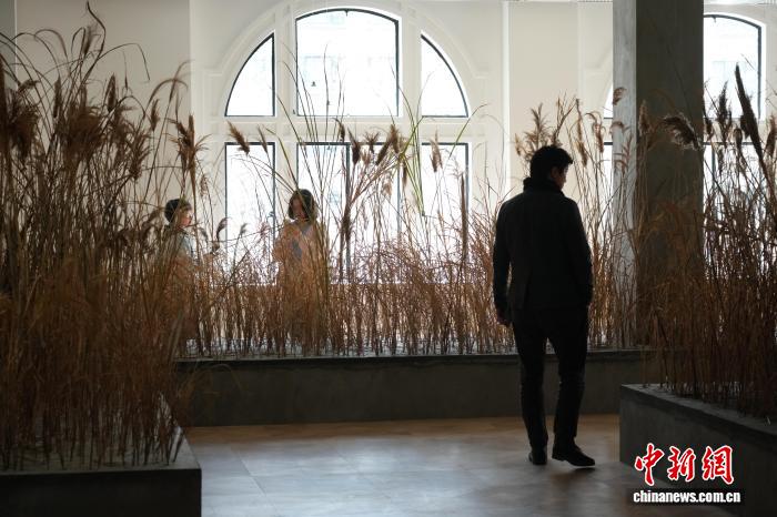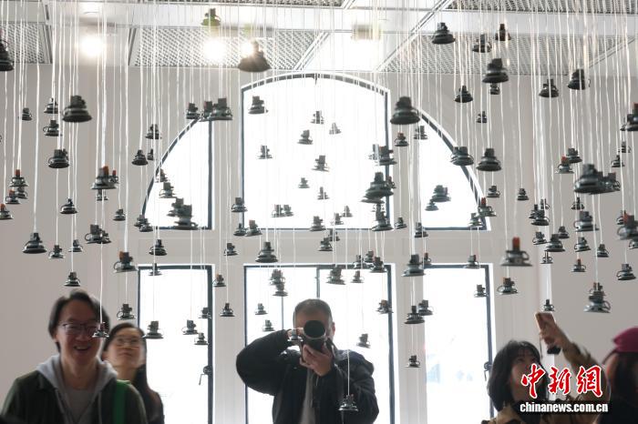 图为不雅寡穿越于拆置撰着《培植》之间。中新社记者 弛亨伟 摄